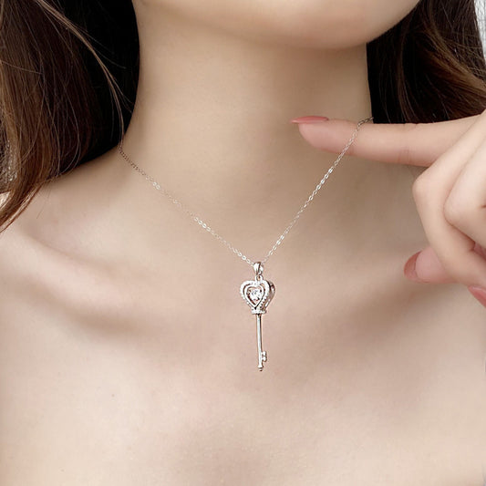 Heart Key Moissanite CZ 925 Sterling Silver Necklace