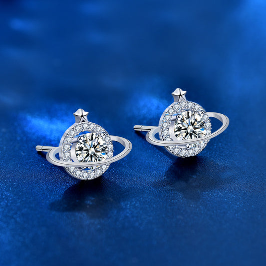 Moissanite CZ Celestial Planet Star 925 Sterling Silver Stud Earrings