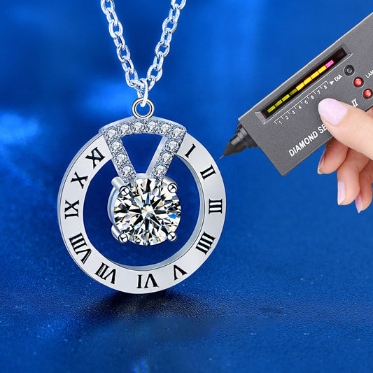 Moissanite CZ Roman Numeral Clock 925 Sterling Silver Necklace