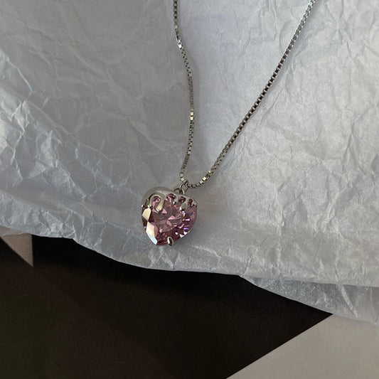 Lady Pink CZ Heart Flowing Lava 925 Sterling Silver Necklace