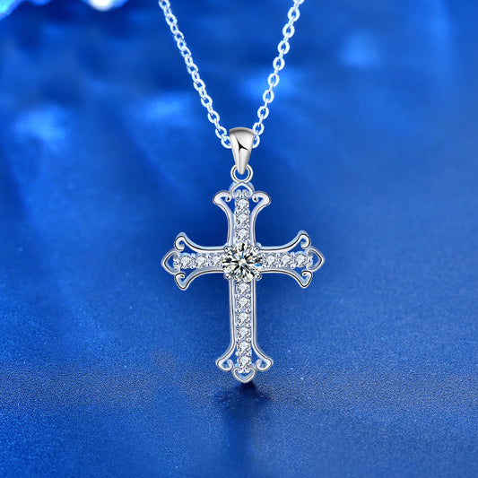 Moissanite CZ Cross Necklace (925 Sterling Silver)